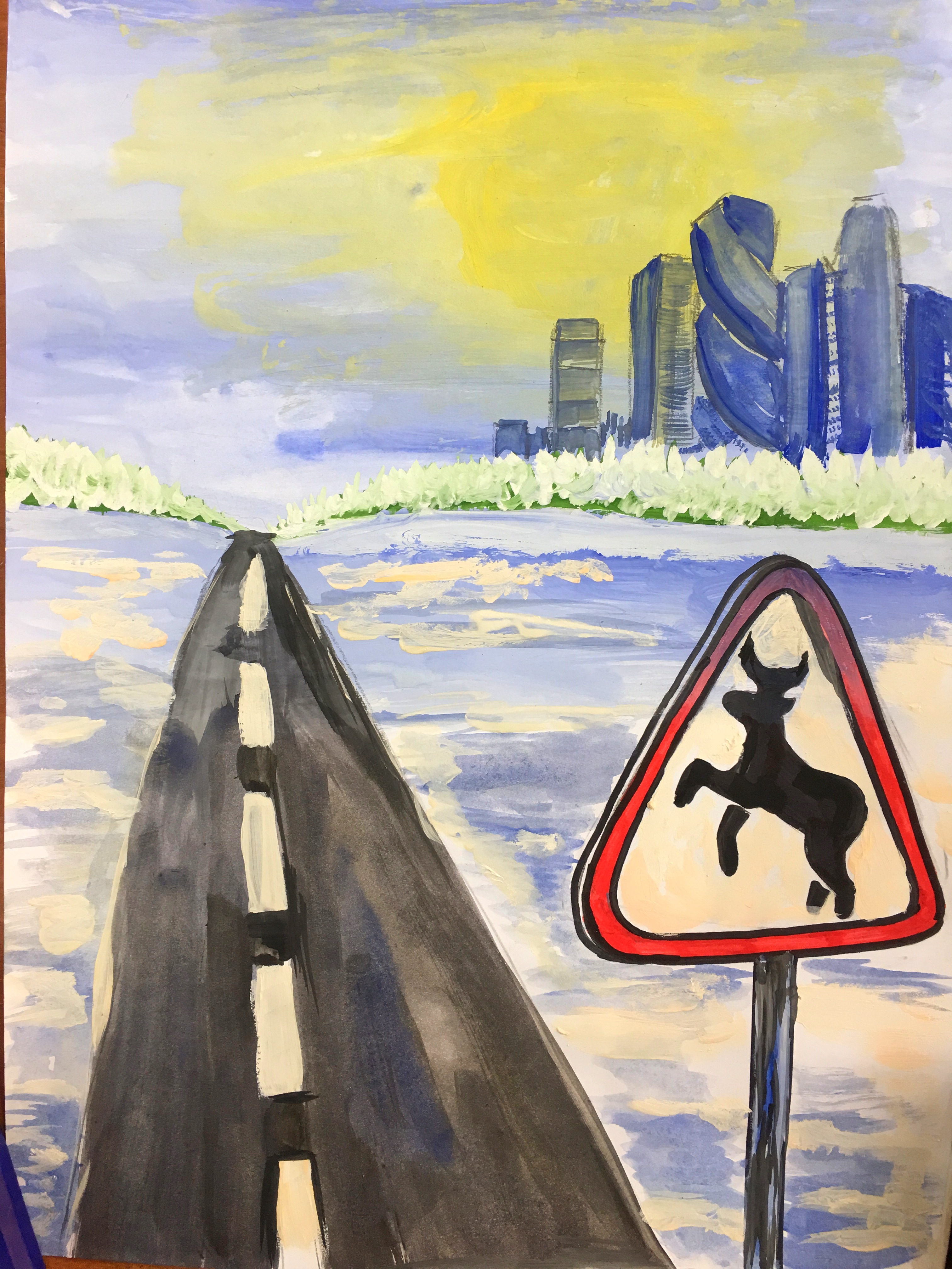 | "Взгляд пешехода", София Р., 11 лет | "Дороги будущего", Анастасия Т., 12 лет |