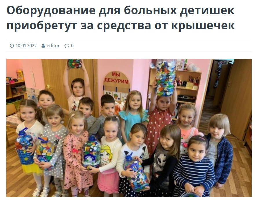 Оборудование для больных детишек приобретут за средства от крышечек
