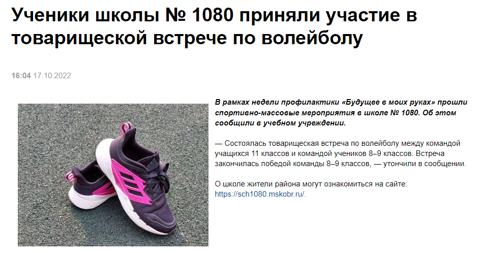 Ученики школы № 1080 приняли участие в товарищеской встрече по волейболу