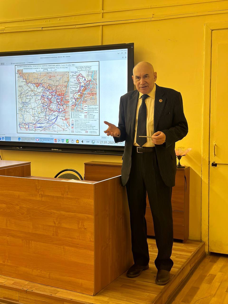 Лектор, историк и эксперт по Второй мировой войне, Тимошин Владимир Петрович, подробно рассказал о событиях, предшествовавших освобождению, о мужестве и стойкости ленинградцев, которые, несмотря на голод и холод, не сдавались и продолжали бороться. Он подчеркнул, как важна память о тех, кто отдал свои жизни за свободу и мирное небо над головой.