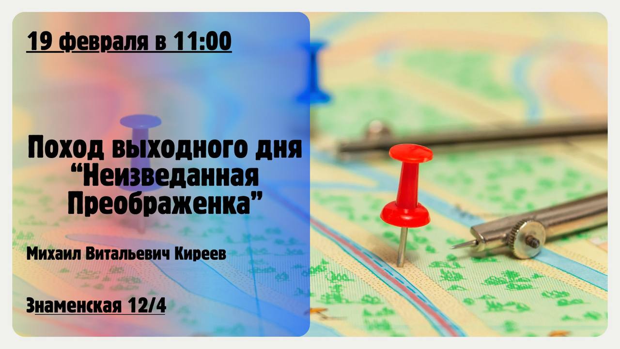 Дата: 19 февраля Время: 11:00 Место встречи: у школьного отделения 1, улица Знаменская, 12/4