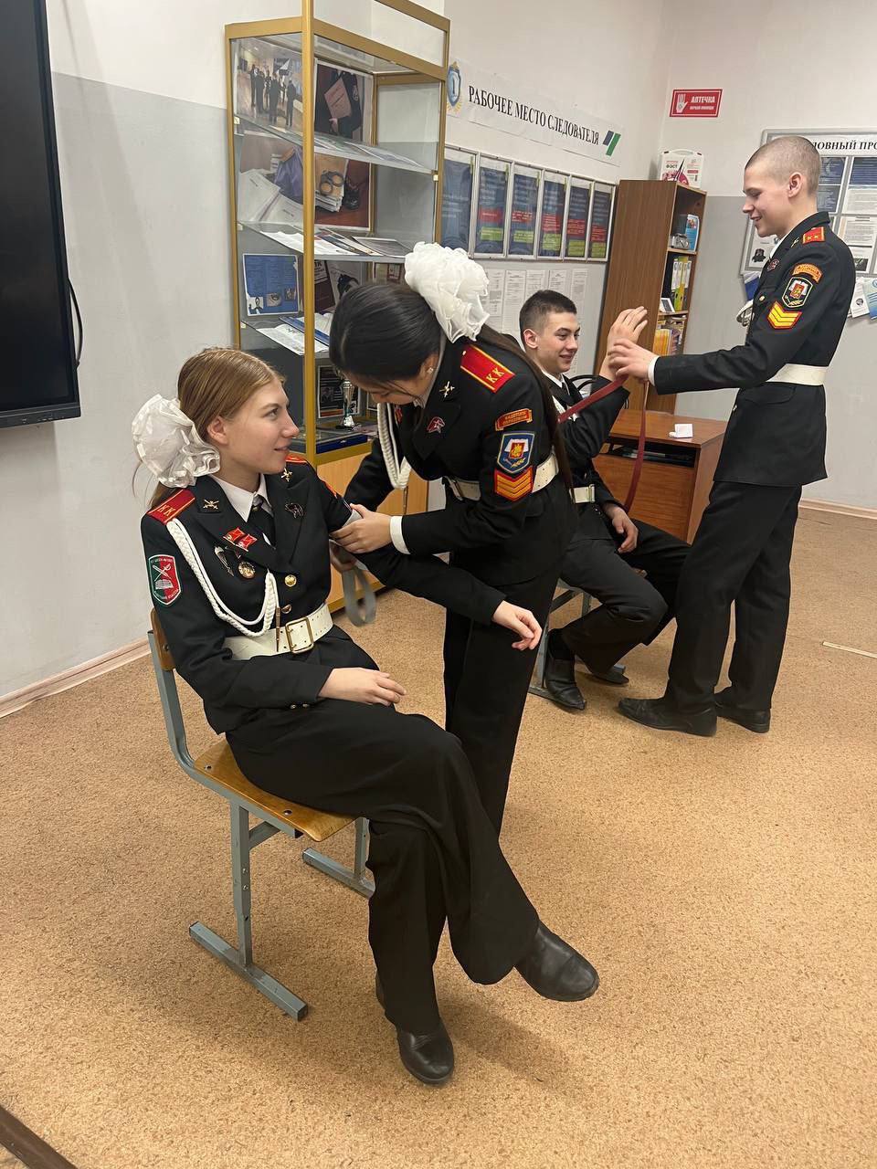 Отличница учебы Кристина О. поделилась впечатлениями: "Мы долго готовились к экзамену. Научились заполнять протоколы, разбирать и собирать оружие, освоили медицинскую подготовку. Многие ребята всерьез заинтересовались работой в правоохранительных органах".