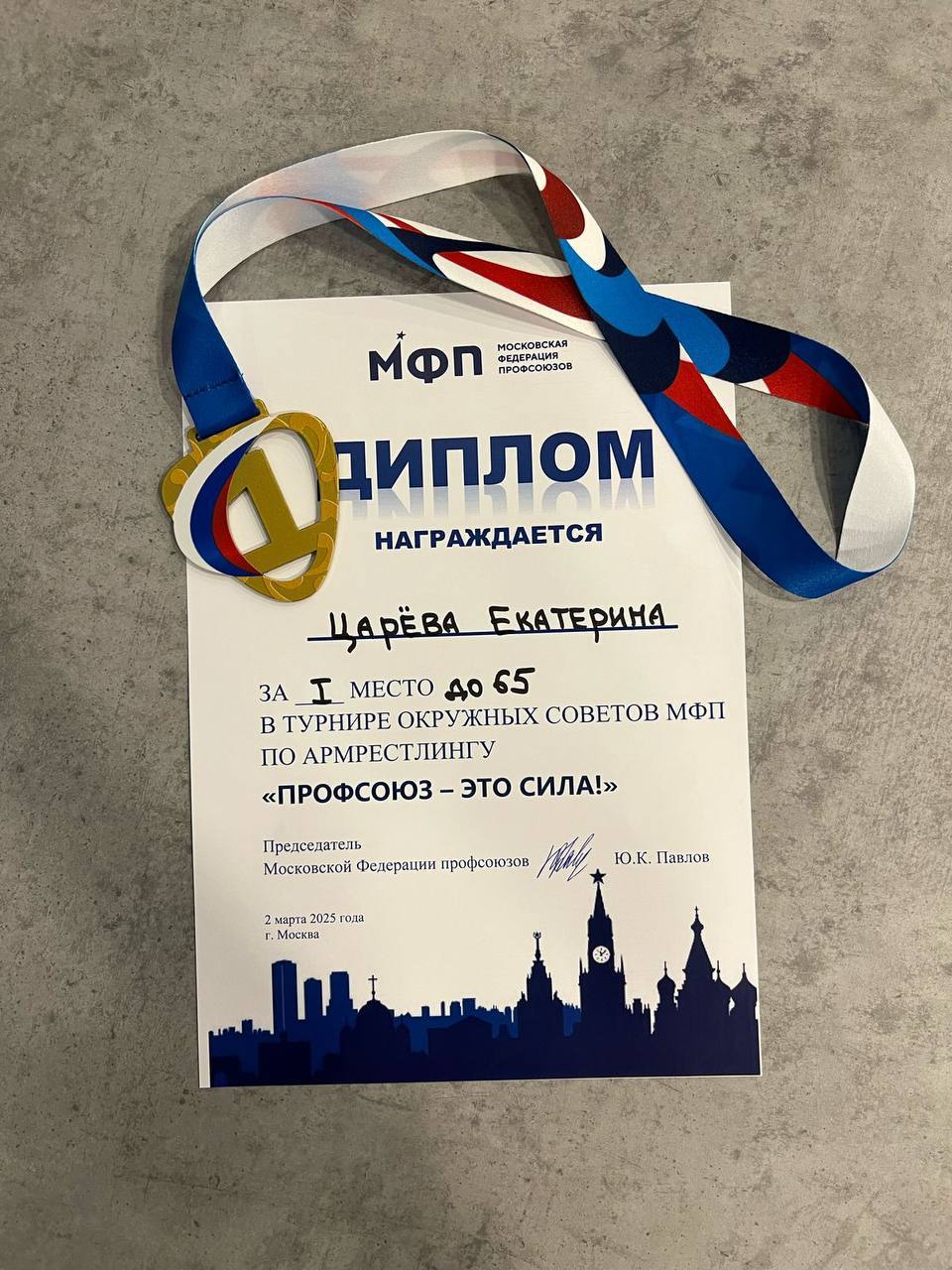 2 марта 2025 года в турнире окружных советов МФП «ПРОФСОЮЗ - ЭТО СИЛА» наша коллега Царева Екатерина Игоревна блестяще представила школу в категории «женщины до 65 кг» и завоевала первое место!