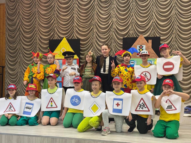 Юные артисты создали настоящую феерию на сцене: яркая поучительная история о правилах дорожного движения, наполненная задорными танцами и мелодичными песнями, держала в напряжении весь зал от начала и до конца!