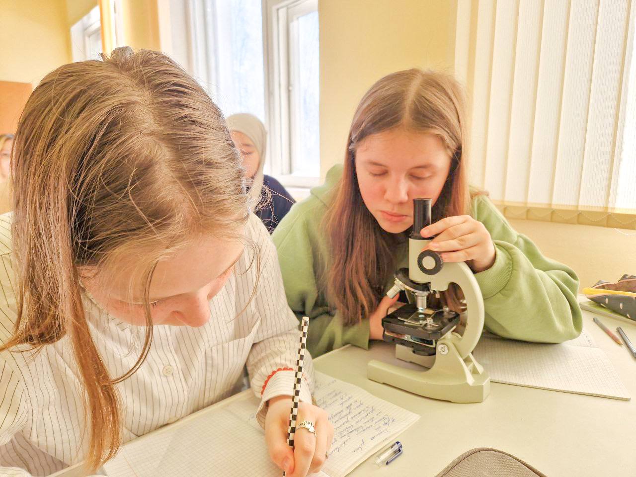 С увлечением разглядывая образцы через микроскопы, ребята открывают для себя удивительные тайны живой природы.
