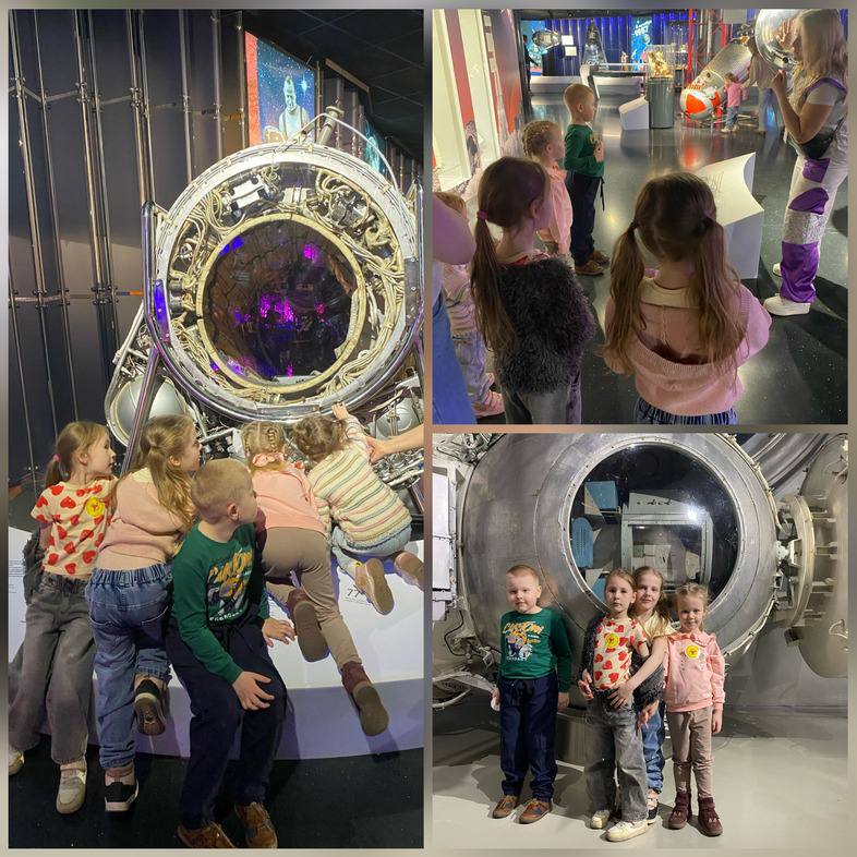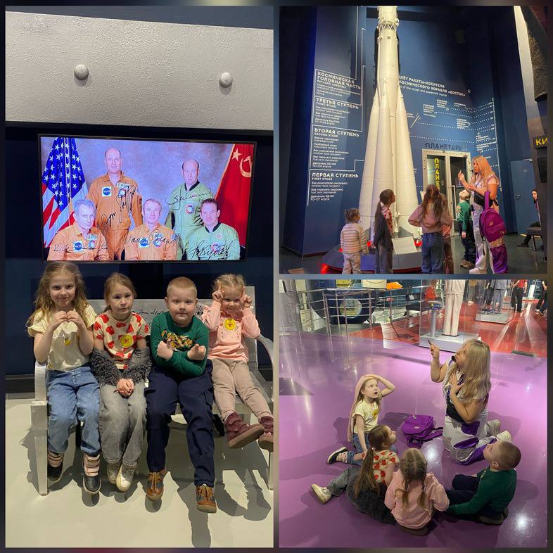 Ребята познакомились с удивительными экспонатами и закрепили свои знания о космосе на практике! Особенно сильное впечатление на них произвела история о полёте в космос легендарных собак — Белки и Стрелки.