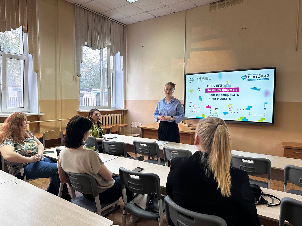 На лекции родители обсудили, как создать благоприятную атмосферу дома, чтобы поддерживать ребенка во время подготовки и периода сдачи экзаменов. Также они получили полезные советы по общению с детьми, выбору слов поддержки и реакции на их эмоции.