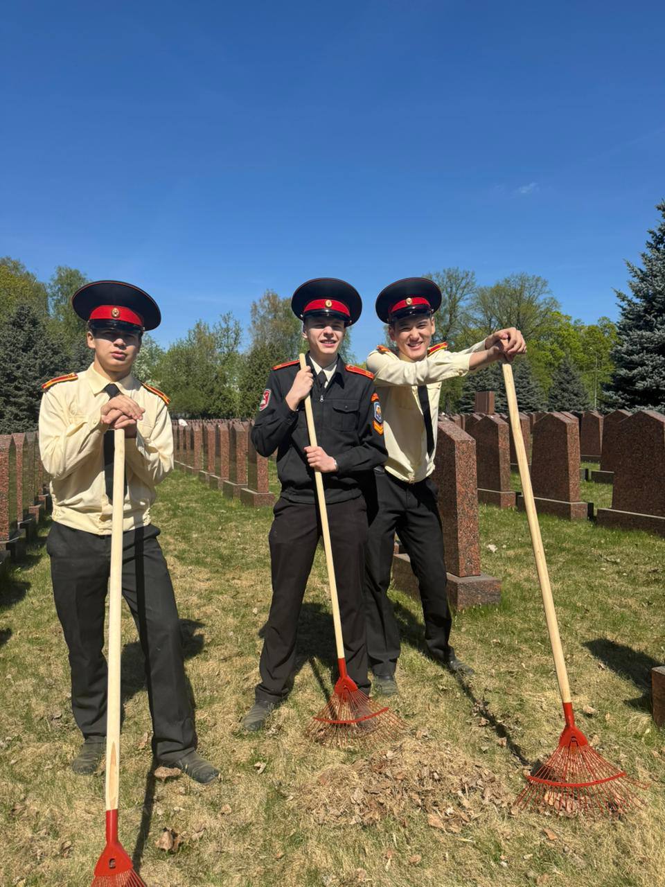 Кадеты вместе с общественными советниками, депутатами и школьниками района Преображенское навели порядок на мемориале, привели в чистоту могилы и территории.