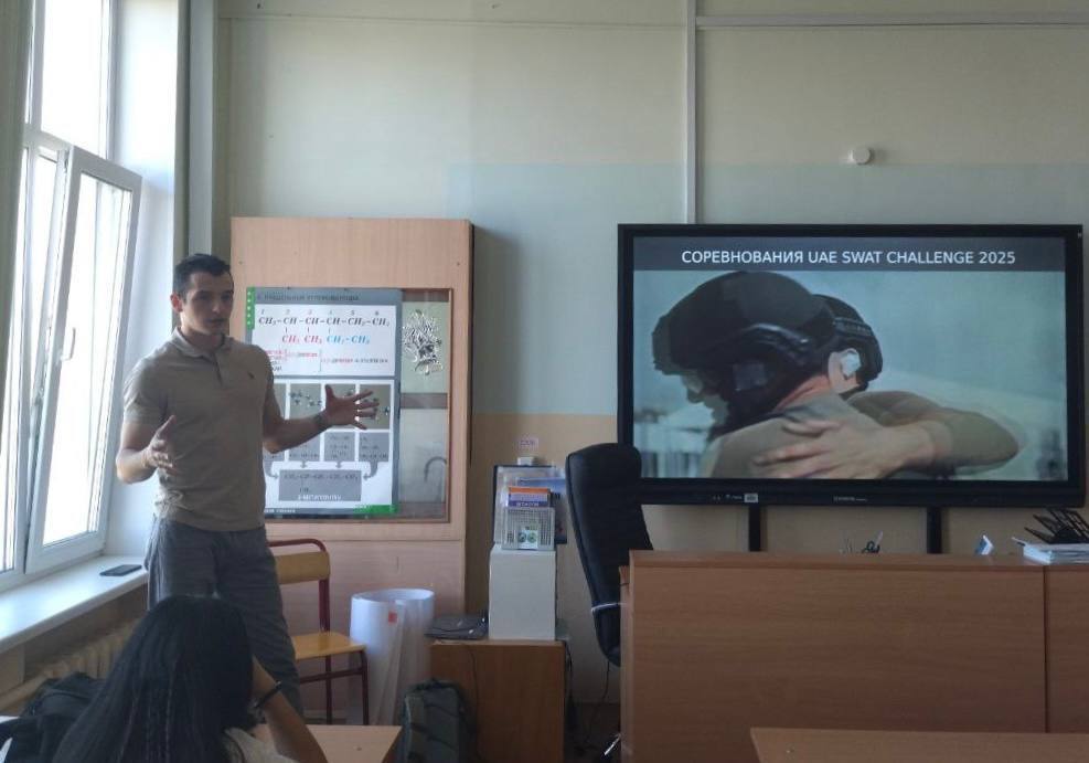 Ребята с огромным интересом слушали его рассказ, рассматривали фотографии с соревнований и задавали множество вопросов. Кто знает, может быть, среди наших школьников появятся будущие защитники Отечества?