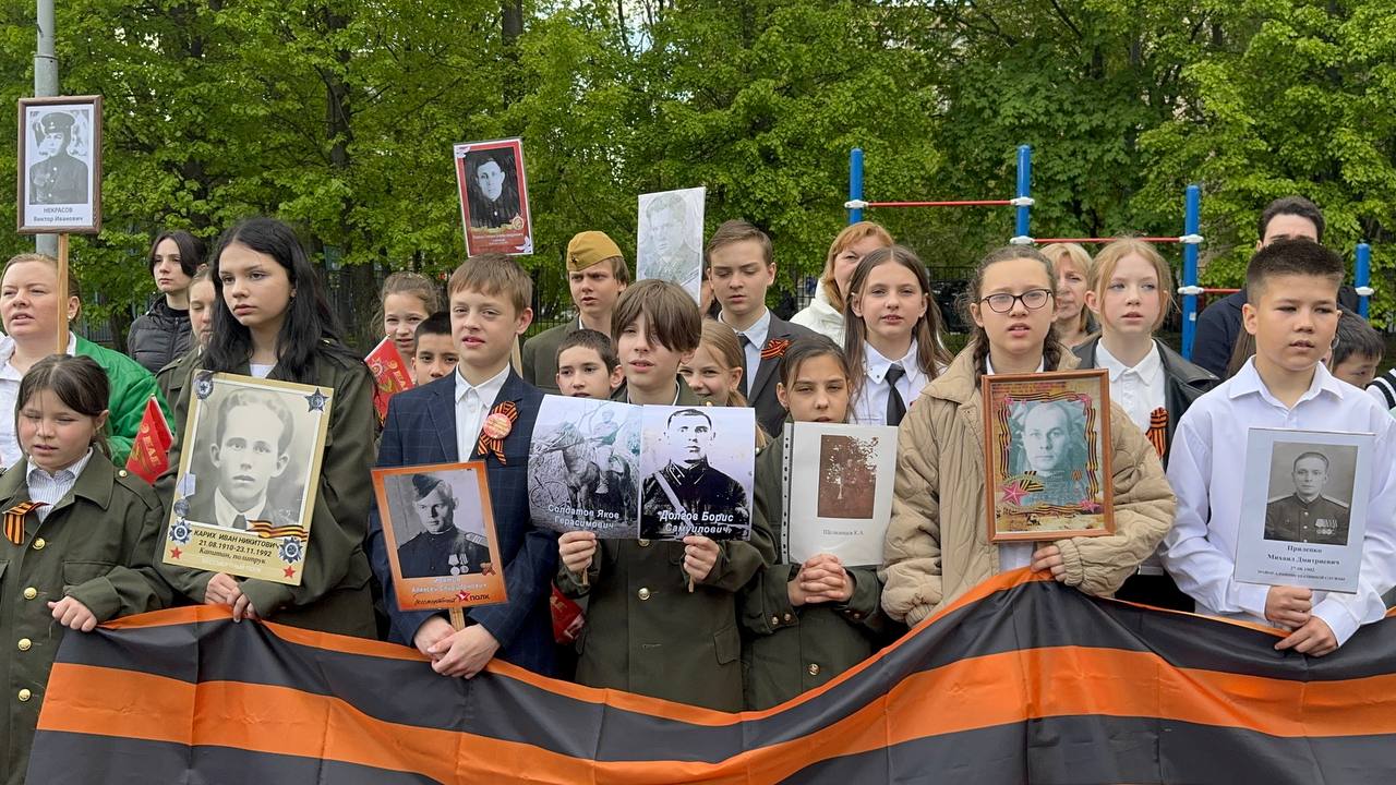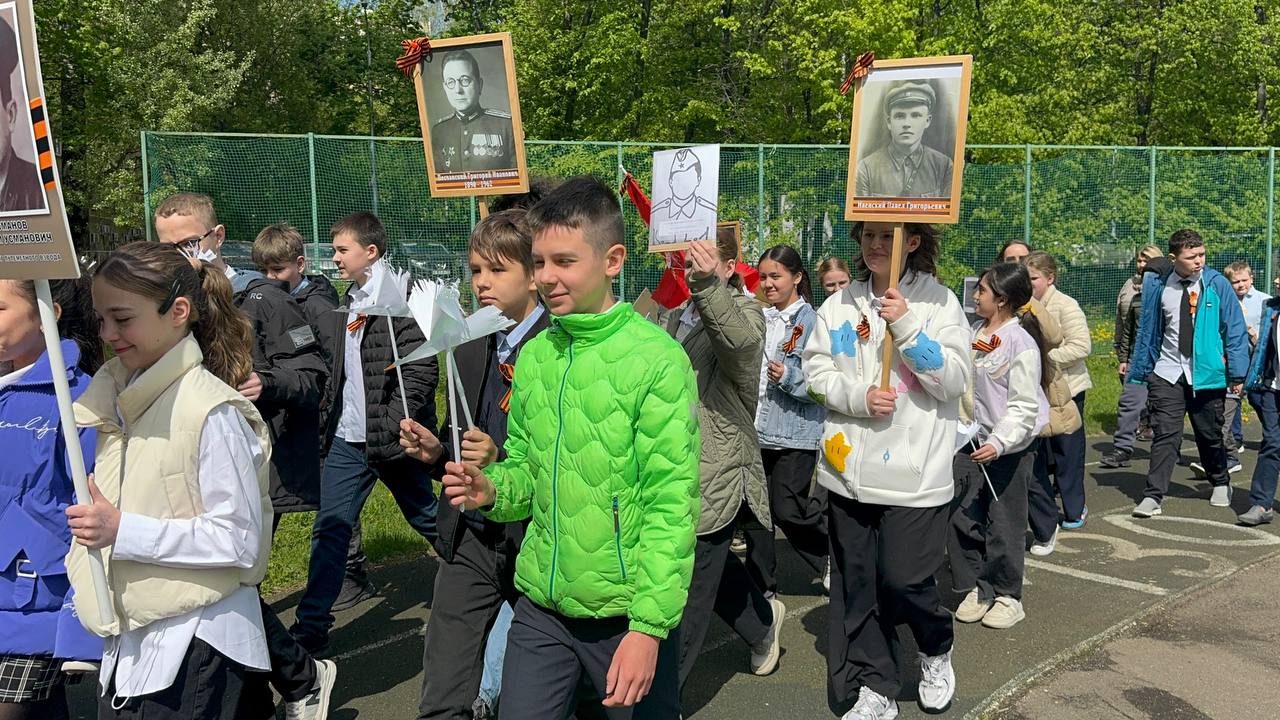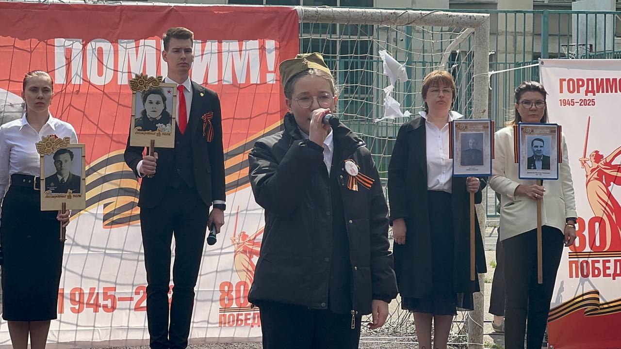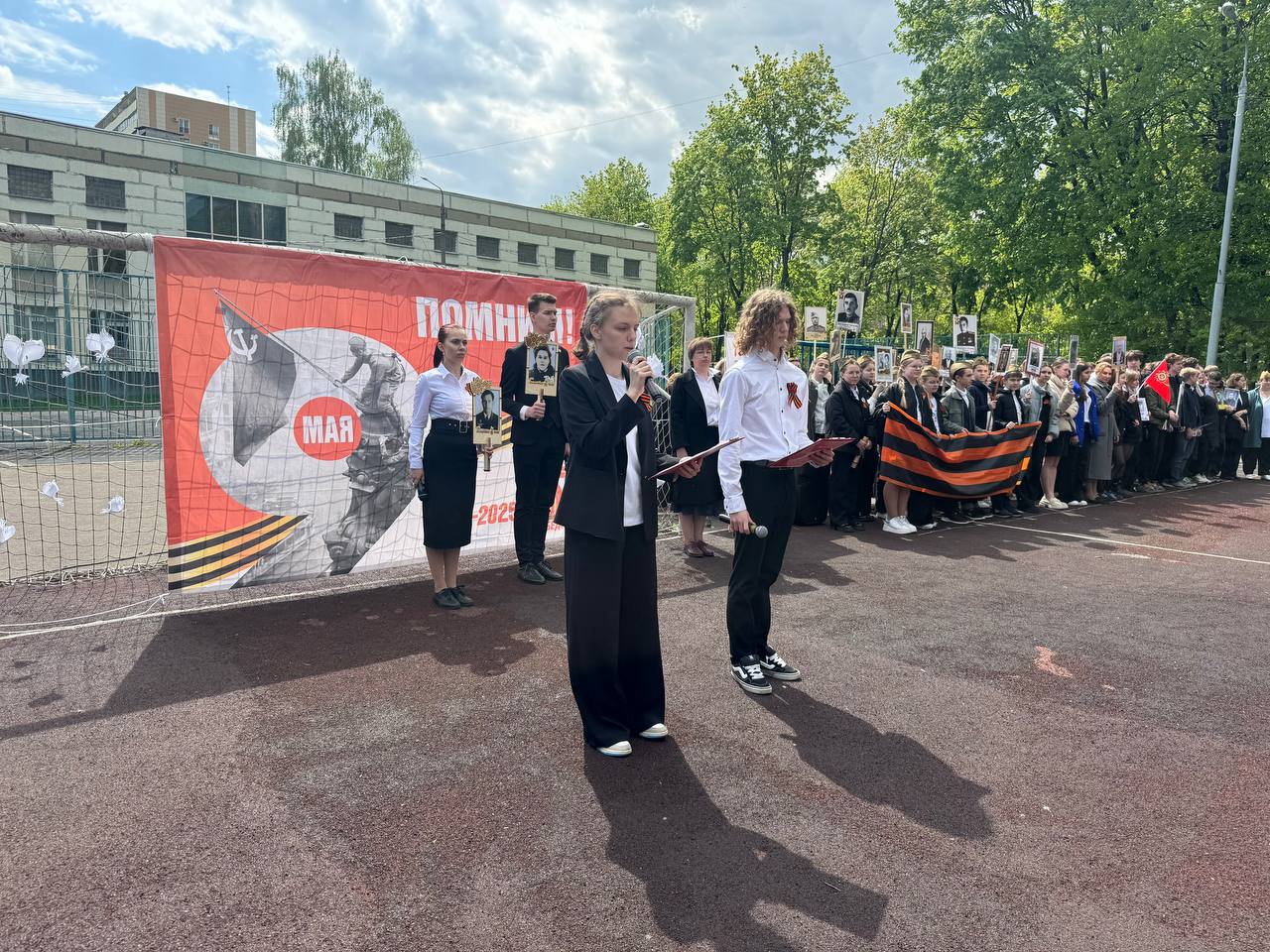 Учащиеся и учителя с гордостью несли портреты своих героев, отдавая дань уважения тем, кто защищал нашу Родину. Минута молчания, наполненная особым смыслом, объединила всех присутствующих в едином порыве памяти.