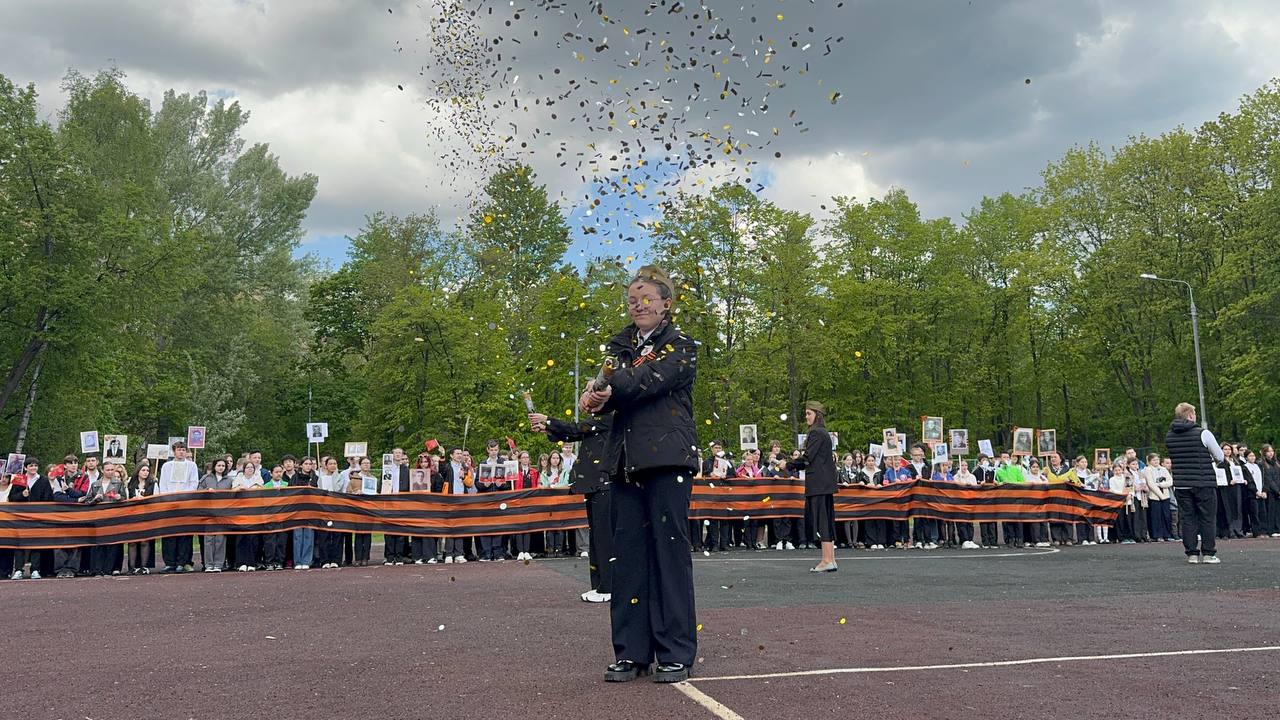 Вместе, единым фронтом, ученики исполнили легендарную песню «День Победы». А в завершение акции ребята устроили небольшой импровизированный салют хлопушками, который стал символом праздничного настроения и нашей благодарности героям.