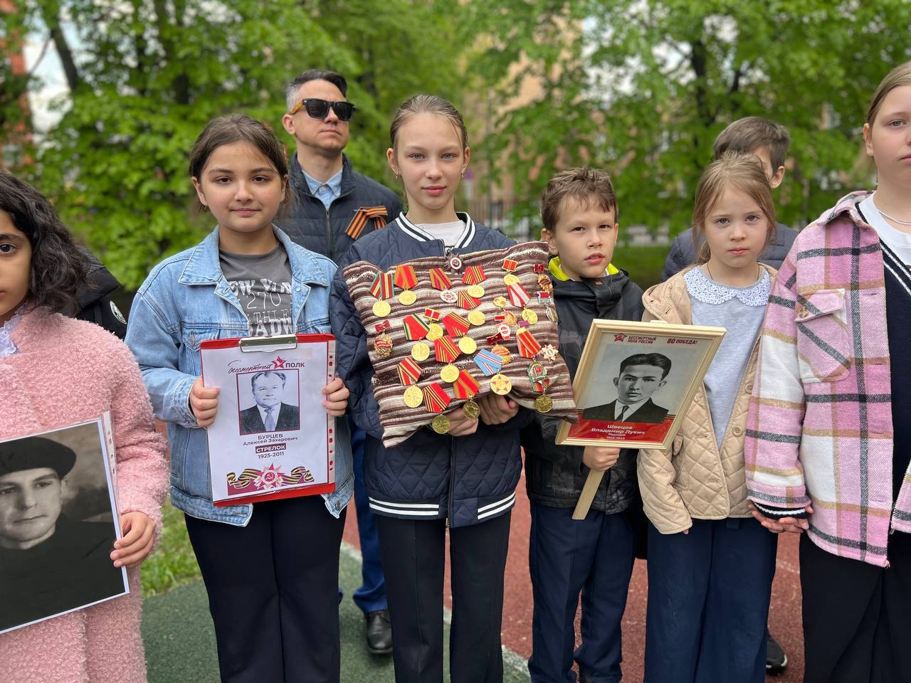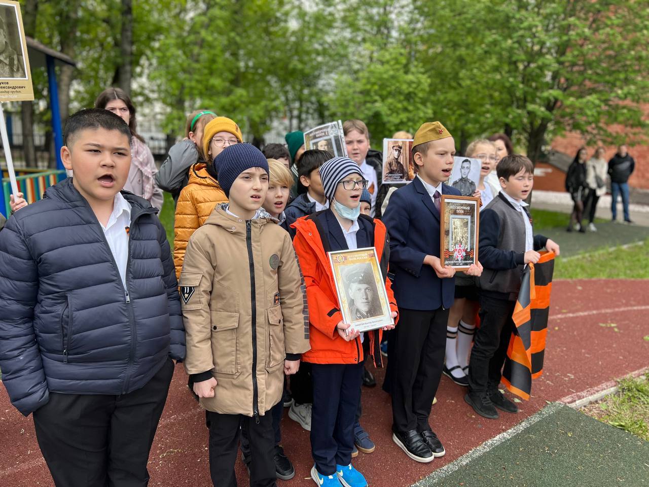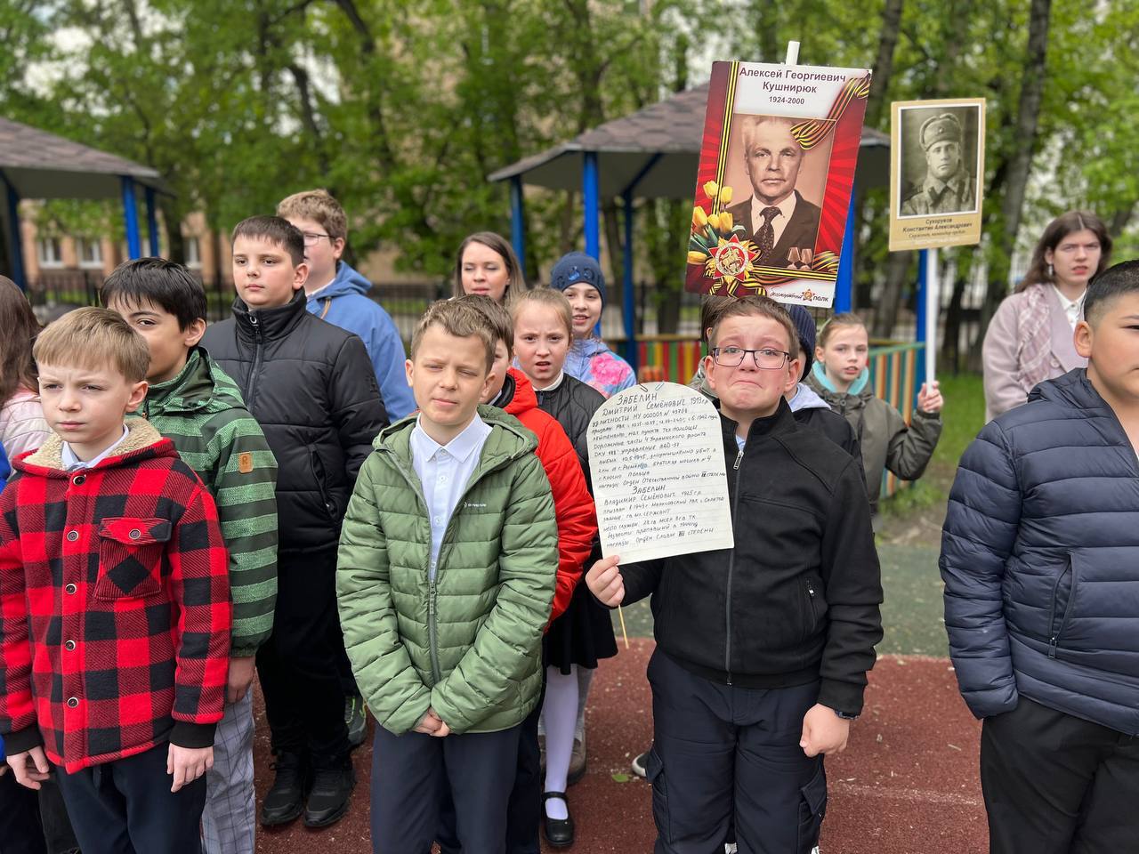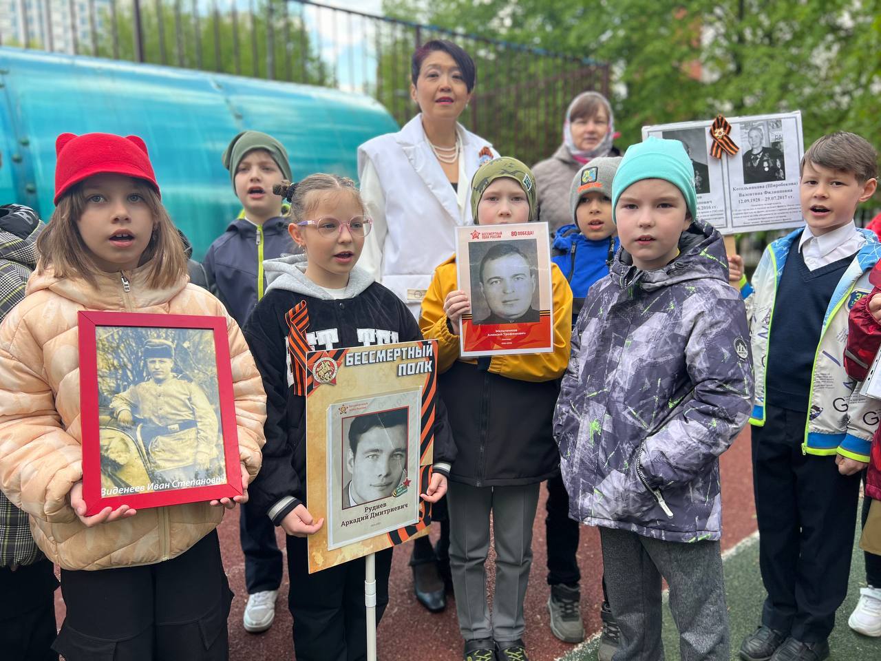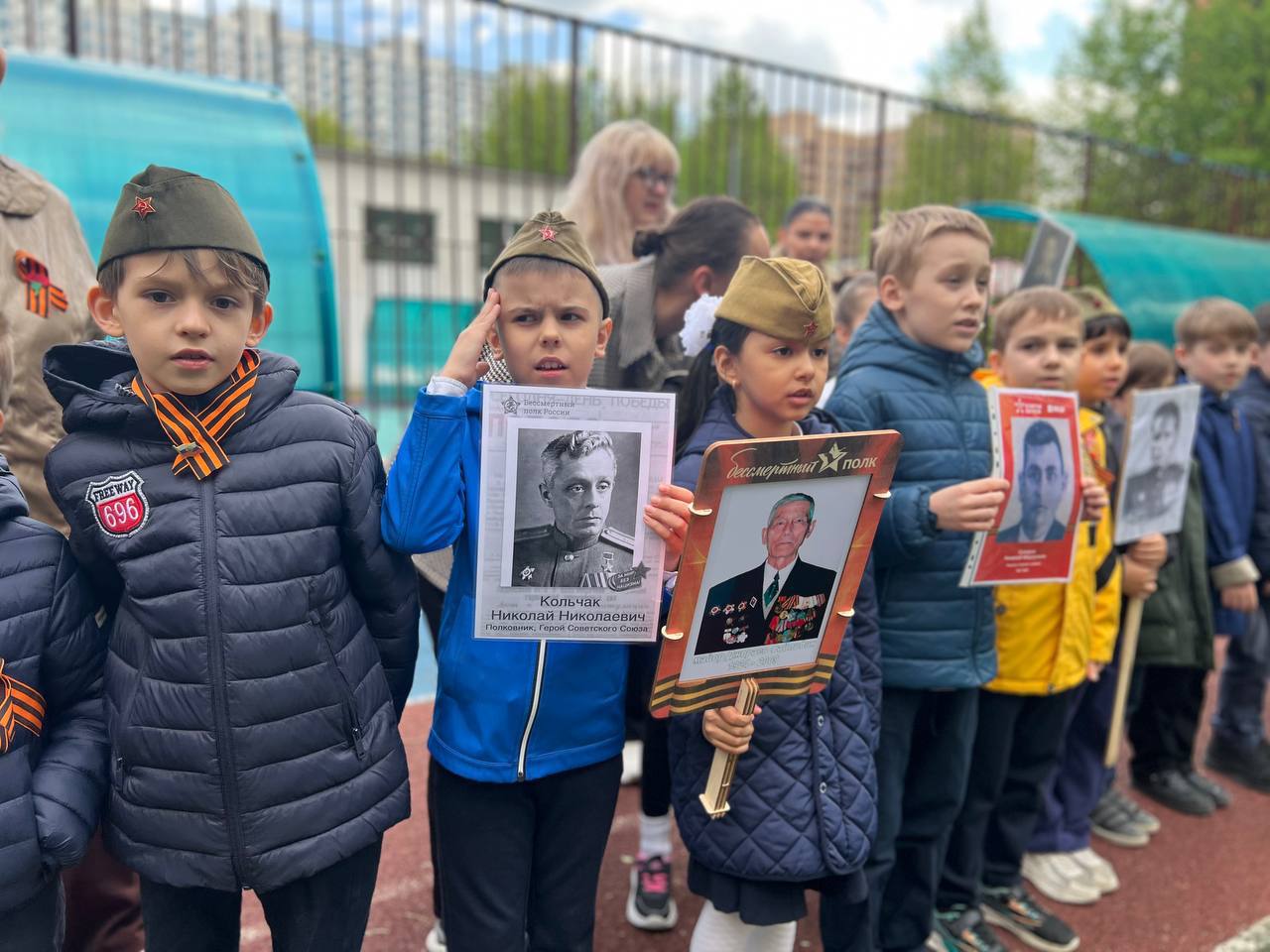 Наши самые юные ученики с гордостью пронесли портреты своих героев-предков по коридорам родной школы. В их глазах читалась особая гордость и понимание важности сохранения памяти о тех, кто подарил нам мирное небо над головой.