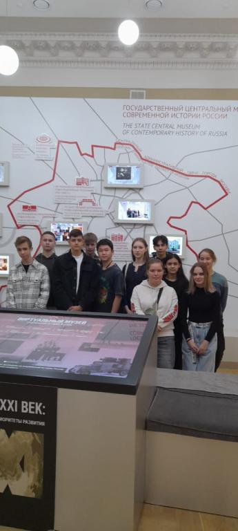 Учащиеся 10 "Г" класса 9 сентября посетили "Музей современной истории России". Ребята познакомились с экспозицией музея, посвященной основным вехам истории России с середины XIX века по наши дни. Особенный интерес вызвали интерактивные элементы экспозиции, которые помогают глубже и более наглядно познакомиться с представленными экспонатами. Знания, полученные в ходе экскурсии помогут учащимся лучше усвоить материал, который изучается на уроках истории.